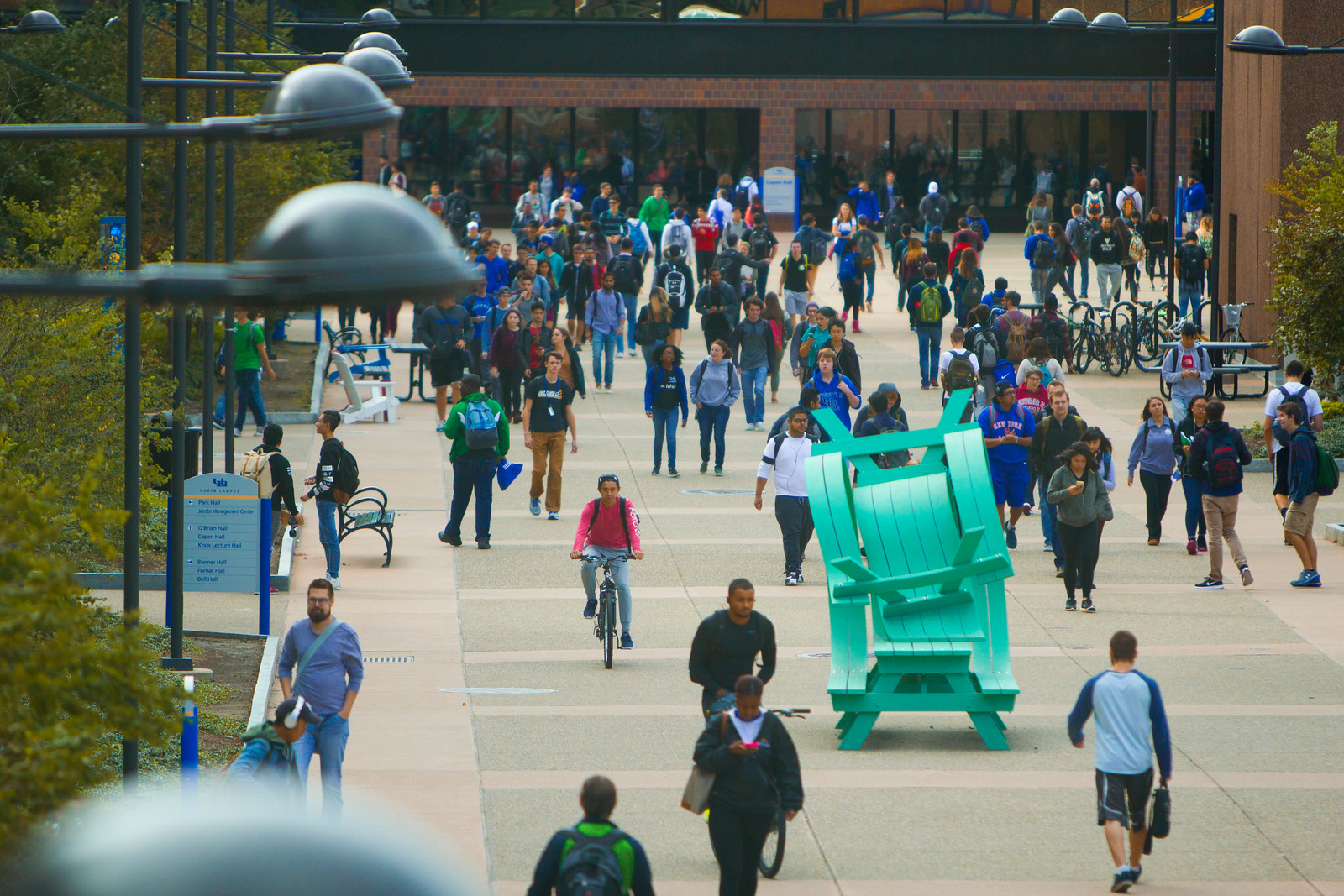 Students on the academic spine on the University at Buffalo's North Campus. Photo: Douglas Levere
